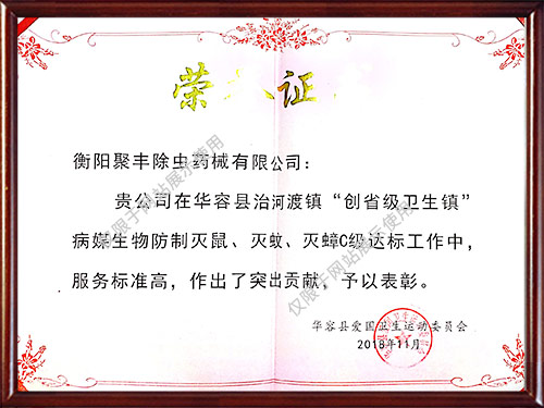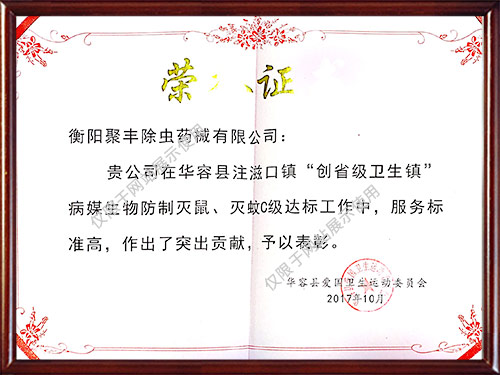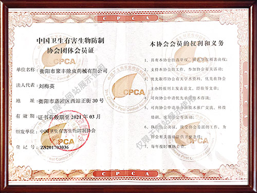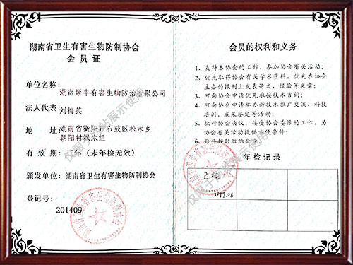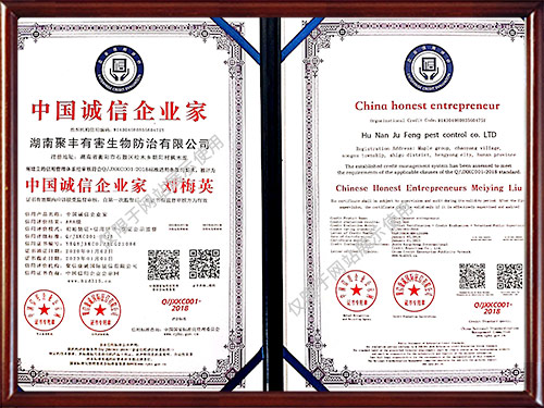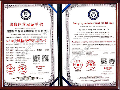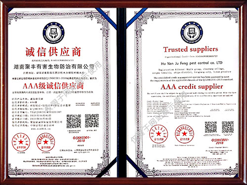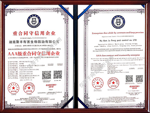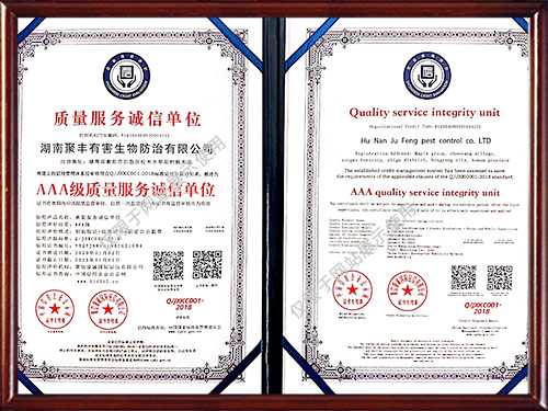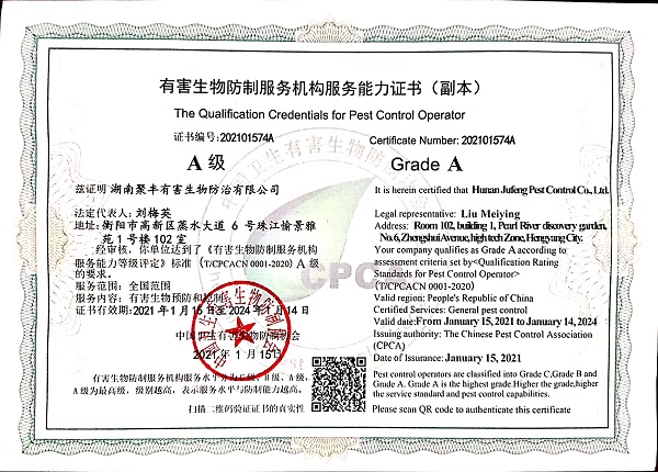 公司曾獲得多種榮譽(yù)資質(zhì)證書,所有施工人員經(jīng)過專業(yè)培訓(xùn)且經(jīng)過國(guó)家相關(guān)部門考核認(rèn)證,能夠?yàn)閺V大客戶提供一流的除蟲技術(shù)服務(wù),為保障客戶擁有一個(gè)健康、清潔、安全、舒適的工作和生活環(huán)境提供了保障。